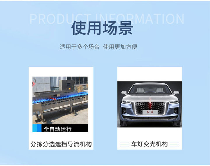 应用:分拣分选遮挡导流机构、车灯变光机构