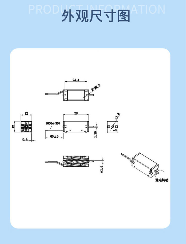 工作方式:通电转动90度