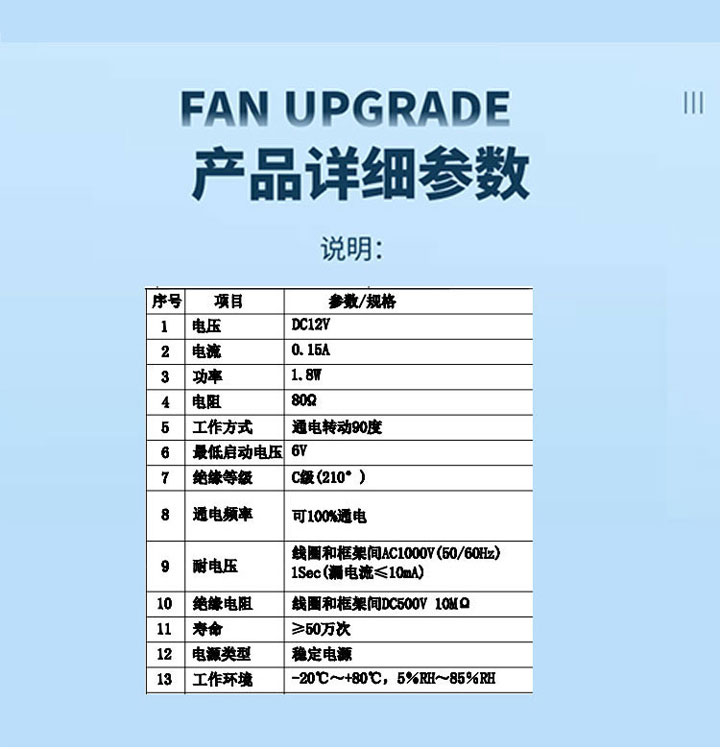 | 电压: | DC12V | 行程: | 电阻: | 80欧 | 功率: | 1.8W | |